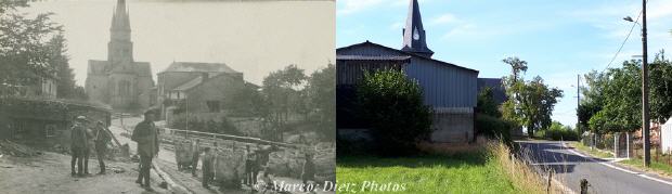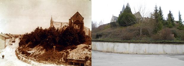 La route de Sommepy à Saint-Étienne-à-Arnes en 1919 et de nos jours