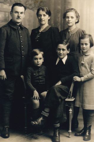 de gauche à droite: la mère Germaine, la fille Marie-Odile, le père Charles et le fils Gérard en 1945
