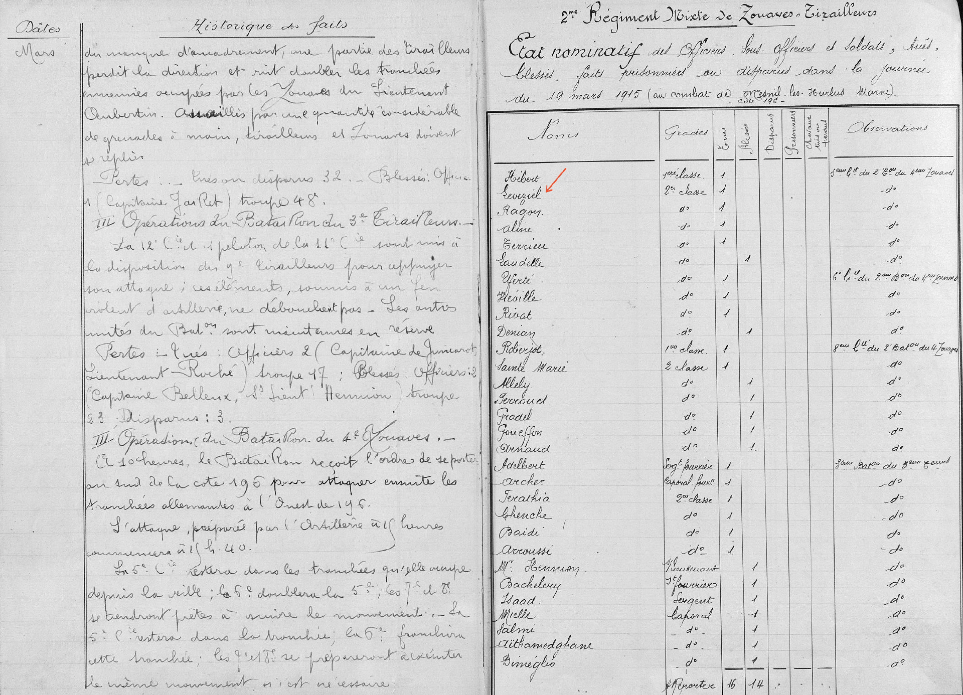 Am 12 September 1914 wurde er in das 2. Zuaven Regiment eingezogen.