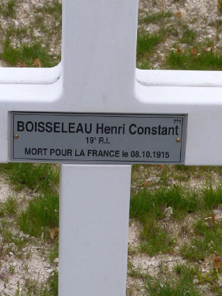 Geboren wurde Henri August Boisseleau am 19. November 1889 in Ardelay in der Vendée. Im Alter von 20 Jahren absolvierte er seinen Militärdienst beim 137. Infanterie Regiment in Fontenay le Comte. Nach seinem Dienst ging er wieder nach Ardelay um seinen Beruf als Zimmermann auszuüben. Am 29. September 1913 heiratete er Marie Papin. Durch die Mobilmachung am 2 August 1914 wurde er wieder in das 137 Infanterie Regiment abkommandiert und ging dann an die Front. Am 18. April 1915 wurde seine Tochter Simone geboren. Im Sommer 1915, wurde Henri Boisseleau zum ersten Mal verletzt und wurde in das Krankenhaus von Joubert d'Ancenis eingeliefert. Nach seiner Genesung begab er sich wieder am 26. September 1915 an die Front und wurde zum 19. Infanterie Regiment der 11. Kompanie abkommandiert. Während eines Angriffes am 8. Oktober 1915 auf die deutschen Schützengräben im Sektor „ Brosse à Dents „ bei Tahure wurde ihm ein Bein durch ein Granatsplitter zerfetzt. Darauf hin wurde er in das Lazarett nach „ La Croix en Champagne „ gebracht, wo er auf seinen Bruder traf. Dieser spendete ihm sein Blut, weil aber die Medizin damals noch nicht ausgereift war, erlag Henri Boisseleau noch am selben Tag seiner Verletzung. Sein Bruder stand ihm bis zu seinem letzten Atemzug zur Seite. Er wurde in „ La Croix en Champagne begraben. Am 26. April 1916 wurde seine zweite Tochter Marie geboren, die ihren Vater nie kennen lernen durfte. Untröstlich, verstarb seine Frau einige Monate später an der spanischen Grippe und hinterließ zwei Waisenkinder. Im Jahre 1922 wurde der Militärfriedhof in „ La Croix en Champagne „ aufgegeben und die verstorbenen Soldaten wurden dann in die Nekropole nach Saint Jean sur Tourbe überführt. Henri Boisseleau wurde die Militärmedaille und das Croix de Guerre verliehen.