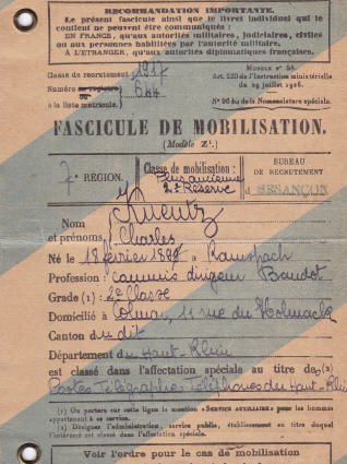 Karl ( Charles ) Kuentz wurde am 18 Februar 1897 in Ranspach am Oberrhein geboren, während einer Epoche wo Elsass-Lothringen seit 1871 dem deutschen Reich angehörte. Karl wechselte vier mal in seinem Leben die Nationalität.