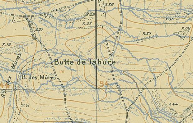 La côte 196 se trouvait entre le Bois jaune Brûlé (Granat Wäldchen) et le Bois Christofari (Traube)