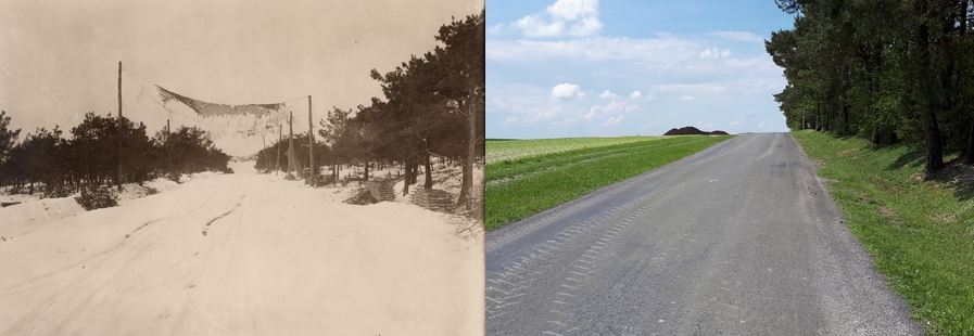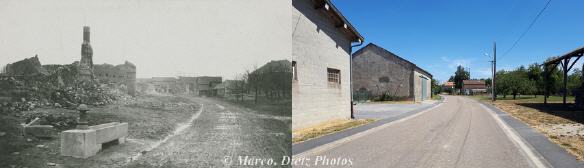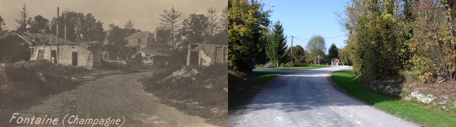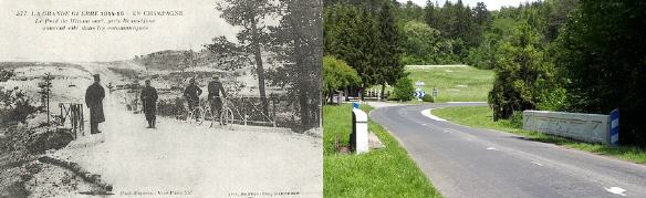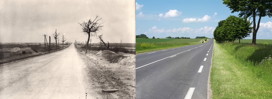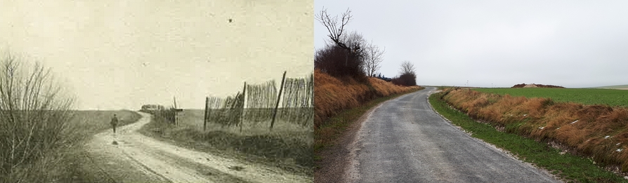 La route de Sommepy à Saint-Étienne-à-Arnes en 1919 et de nos jours