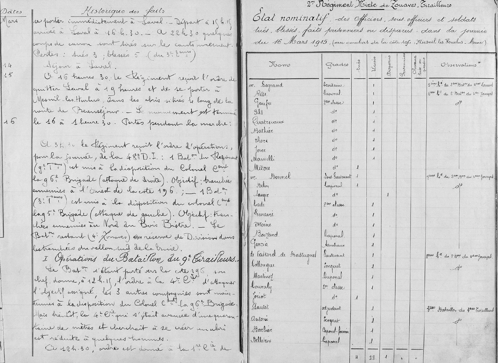 JMO du 2. Régiment Mixte de Zouaves-Tirailleurs du 14 au 19 mars 1915