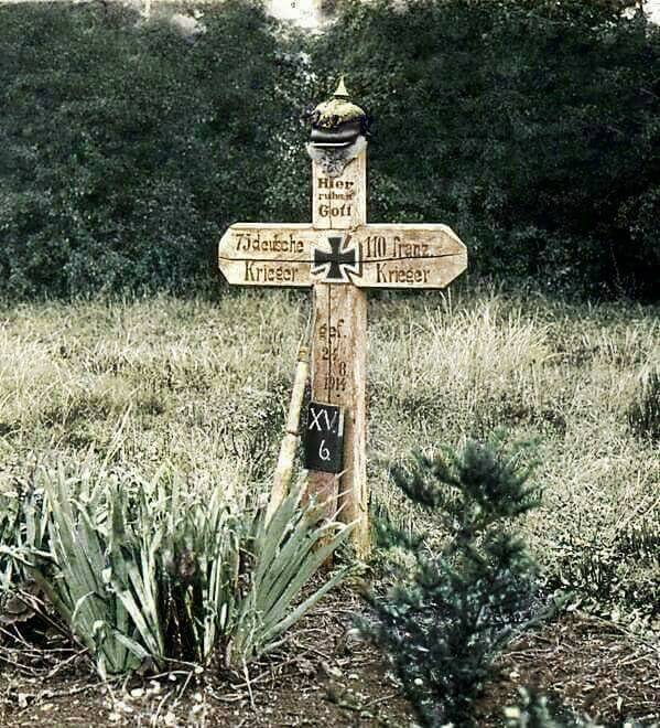 Während der englischen Offensive im September 1918, hatten wir viele Verluste und zerstörte Geschütze. Alle Geschütze unserer Batterie wurden von den feindlichen Geschützen zerstört. Freunde sind gefallen.