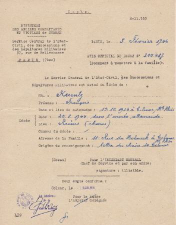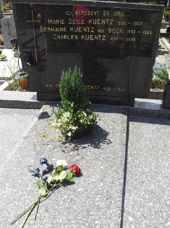 Charles Kuentz, letzter bekannter elsäßischer Veteran des 1. Weltkrieges ist am 7 April 2005 in Colmar von uns gegangen. Letzter Zeuge der zwei mörderischen Konflikte unserer Geschichte, ruht er im Familiengrab neben seiner Frau Germaine und seiner Tochter Marie-Odile.