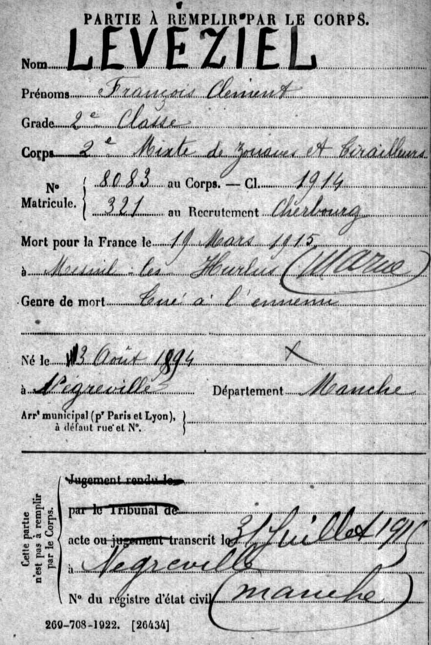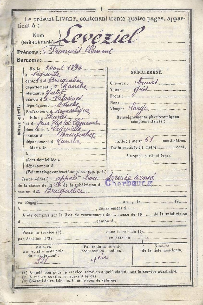 François Leveziel wurde am 3. August 1894 in Négreville ( Manche ) geboren.