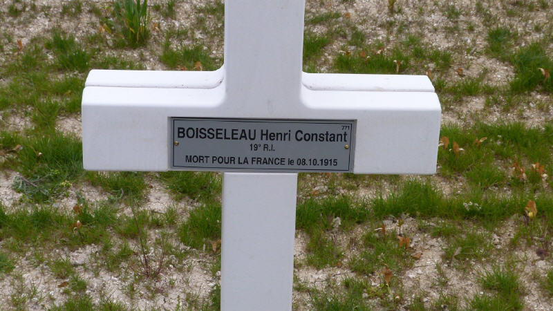 Geboren wurde Henri August Boisseleau am 19. November 1889 in Ardelay in der Vendée. Im Alter von 20 Jahren absolvierte er seinen Militärdienst beim 137. Infanterie Regiment in Fontenay le Comte. Nach seinem Dienst ging er wieder nach Ardelay um seinen Beruf als Zimmermann auszuüben. Am 29. September 1913 heiratete er Marie Papin. Durch die Mobilmachung am 2 August 1914 wurde er wieder in das 137 Infanterie Regiment abkommandiert und ging dann an die Front. Am 18. April 1915 wurde seine Tochter Simone geboren. Im Sommer 1915, wurde Henri Boisseleau zum ersten Mal verletzt und wurde in das Krankenhaus von Joubert d'Ancenis eingeliefert. Nach seiner Genesung begab er sich wieder am 26. September 1915 an die Front und wurde zum 19. Infanterie Regiment der 11. Kompanie abkommandiert. Während eines Angriffes am 8. Oktober 1915 auf die deutschen Schützengräben im Sektor „ Brosse à Dents „ bei Tahure wurde ihm ein Bein durch ein Granatsplitter zerfetzt. Darauf hin wurde er in das Lazarett nach „ La Croix en Champagne „ gebracht, wo er auf seinen Bruder traf. Dieser spendete ihm sein Blut, weil aber die Medizin damals noch nicht ausgereift war, erlag Henri Boisseleau noch am selben Tag seiner Verletzung. Sein Bruder stand ihm bis zu seinem letzten Atemzug zur Seite. Er wurde in „ La Croix en Champagne begraben. Am 26. April 1916 wurde seine zweite Tochter Marie geboren, die ihren Vater nie kennen lernen durfte. Untröstlich, verstarb seine Frau einige Monate später an der spanischen Grippe und hinterließ zwei Waisenkinder. Im Jahre 1922 wurde der Militärfriedhof in „ La Croix en Champagne „ aufgegeben und die verstorbenen Soldaten wurden dann in die Nekropole nach Saint Jean sur Tourbe überführt. Henri Boisseleau wurde die Militärmedaille und das Croix de Guerre verliehen.