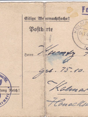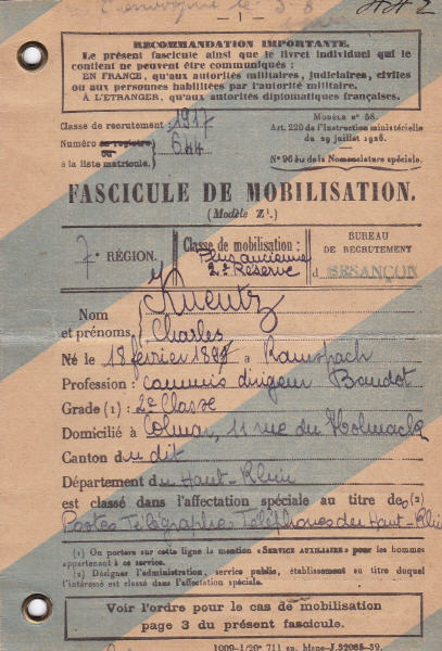 Die Familie Kuentz lebte in Frieden, aber 1939 wurde Charles als Fernmelder nach Saint-Dié-des-Vosges diesmal unter französischer Flagge eingezogen. Wenig später wurde er wieder in das Zivilleben wegen seines Alters und seinen familiären Verpflichtungen entlassen. 1940 wurde Elsass-Lothringen von den Deutschen annektiert, und Charles wechselte zum dritten Mal seine Nationalität.