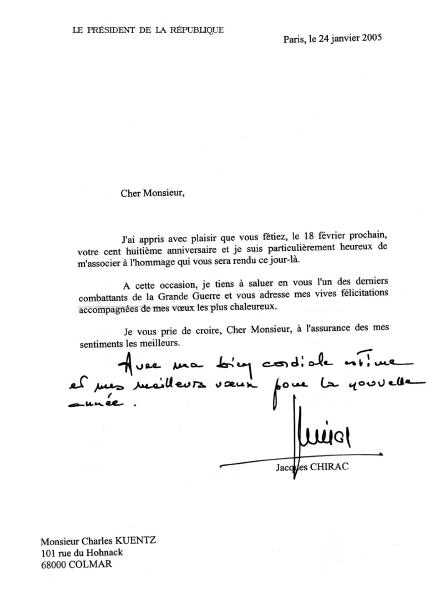108 Jahre und die Glückwünsche vom Präsidenten Jacques Chirac