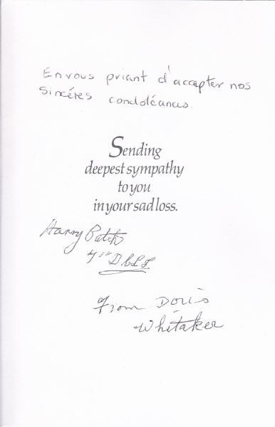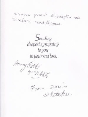 Condoléances de la part de Harry Patch, dernier vétéran britannique de la Grande Guerre