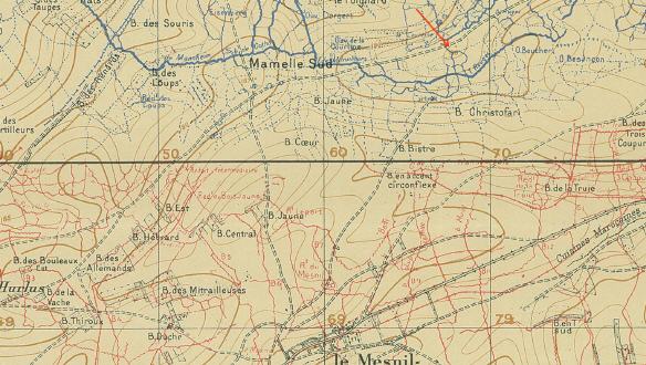 Sur ce plan de fin 1915, la ligne conquise par les troupes françaises en rouge, restera inchangé jusqu'en 1918.