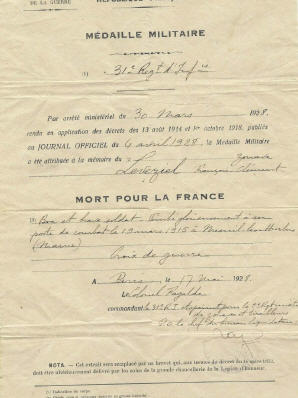 François Leveziel a reçu la Croix de Guerre pour sa bravoure sous le feu de l'ennemi et la Médaille Militaire
