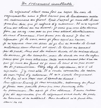 Les combats étaient très rudes. Jour et nuit dans la boue de craie et l'humidité. Un fait qui m'a profondément marqué. Un jour les bombardements étaient si forts qu'il nous a fallu fuir dans les tranchées. Le camarade derrière moi a été tué par un éclat d'obus. Les journées sont brûlantes et les morts sont empilés les uns sur les autres. Nous ne pouvons pas aller les chercher, nous ne savons pas ce que nous pourrions en faire.
